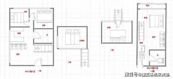 在售户型:35/53㎡2-3房
