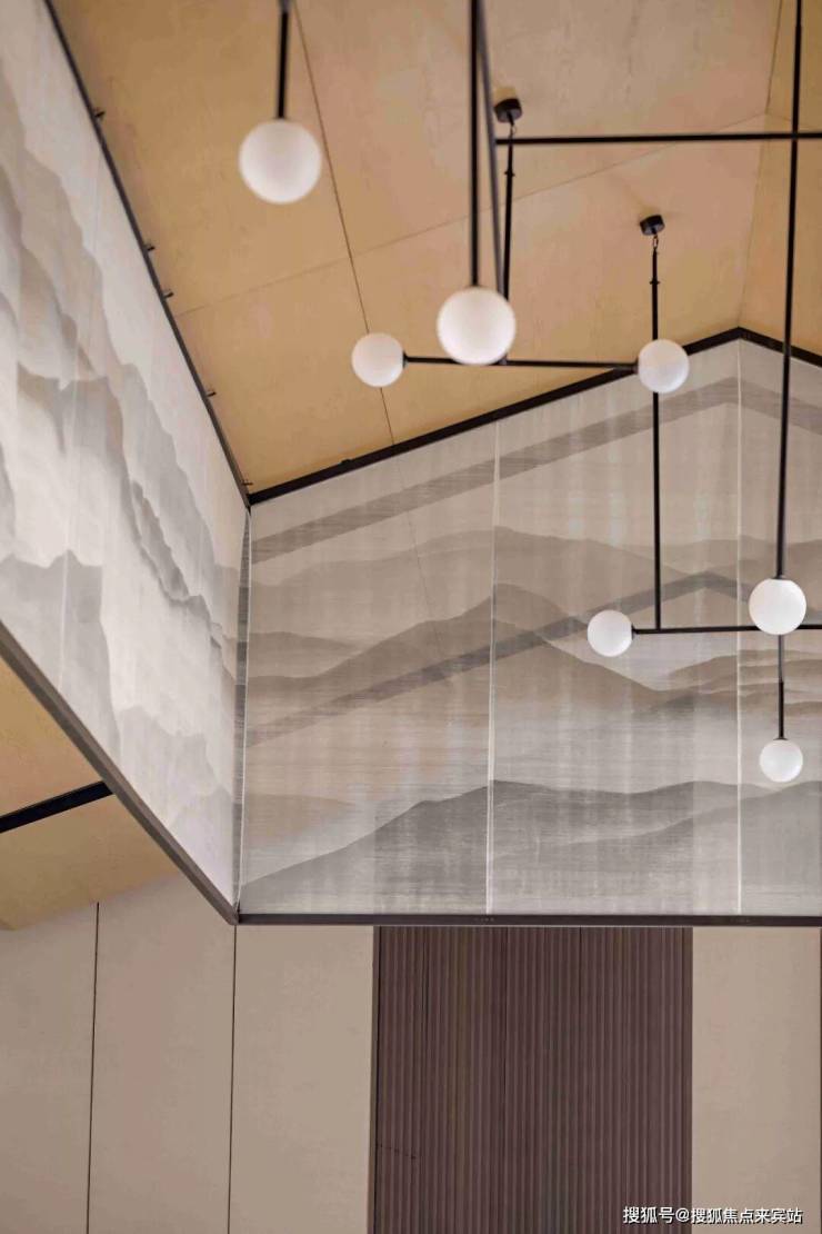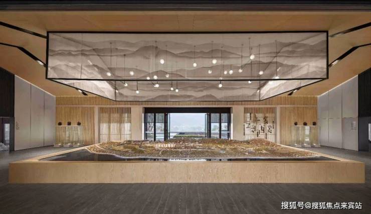 “安静而富有节奏”,作为室内场域的开端,让建筑在简单的外表之下,又拥有了考究的细节,呈现一种神圣感。闲闲着笔,缓缓为之,山水之象,印于轻纱之上,这是沙盘区。高低错落的模型微缩建筑,有着似曾相识的亲近,最终在静寂悠然的转折处,予人一派好风景。