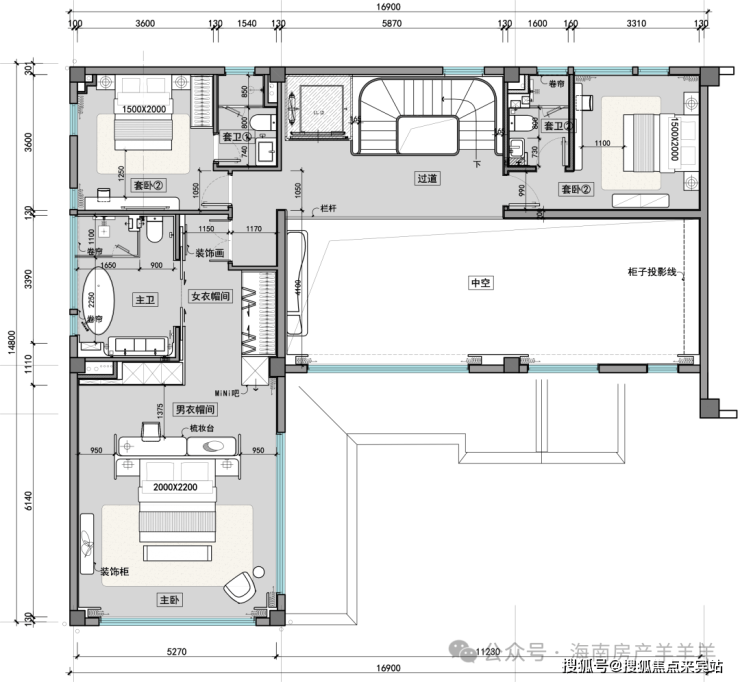 高清户型图电子档(标注尺寸+采光分析+公摊面积)