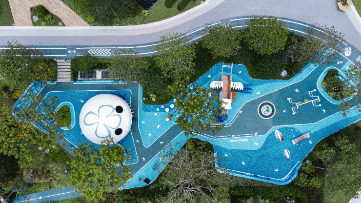 项目的空中园林惊人地大,约2万平的体量接近于一个普通楼盘的面积,大片草坪、灌木、乔木高低错落,在这座“自然森林”驻足片刻,连空气都是慢悠悠的。
