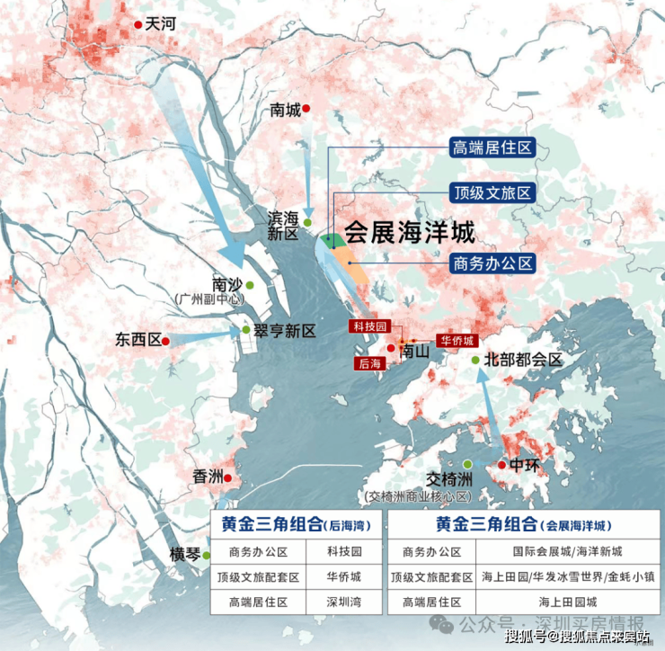 深圳拥有两大“黄金内湾三角组合”,位于前海板块的会展海洋城,以高端居住、顶级文旅、商务办公区三大千亿复合型产业,成为粤港澳大湾区黄金内湾价值制高地。