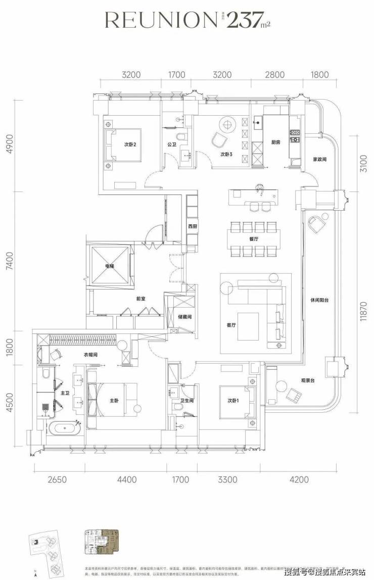 项目规划4栋住宅+1栋幼儿园,合计261套,今年首推户数仅42户,建面约197-237㎡四房大平层革新户型,层高3.3米,梯户比2梯2户,精装修交付,住宅环境纯粹。