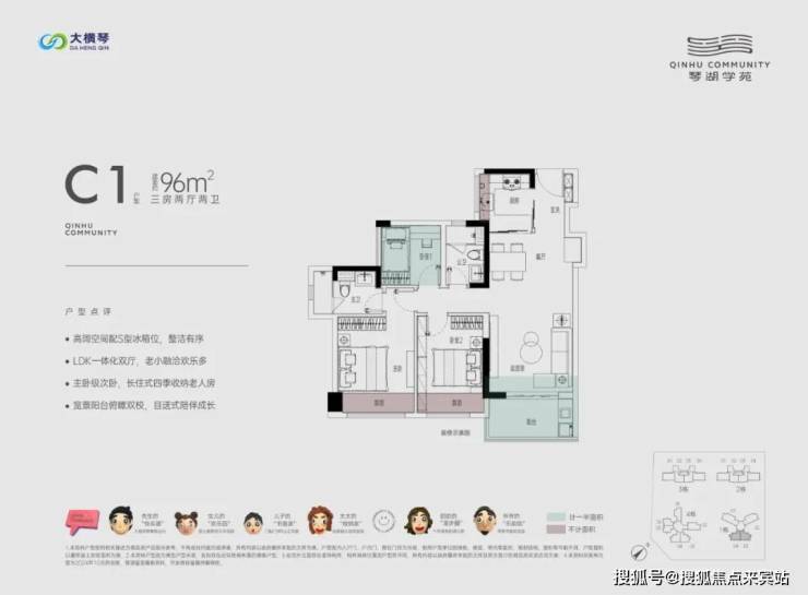 以项目1栋96㎡3房为例,采用三开间, LDK一体化餐客厅、套房式主卧等设计,让空间变得更宽敞,同时实用性拉满。