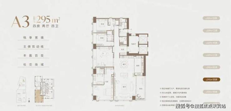 ②高区42F起(150-200米)是约370-375-403㎡4+1房五卫+家庭厅+家政套间;