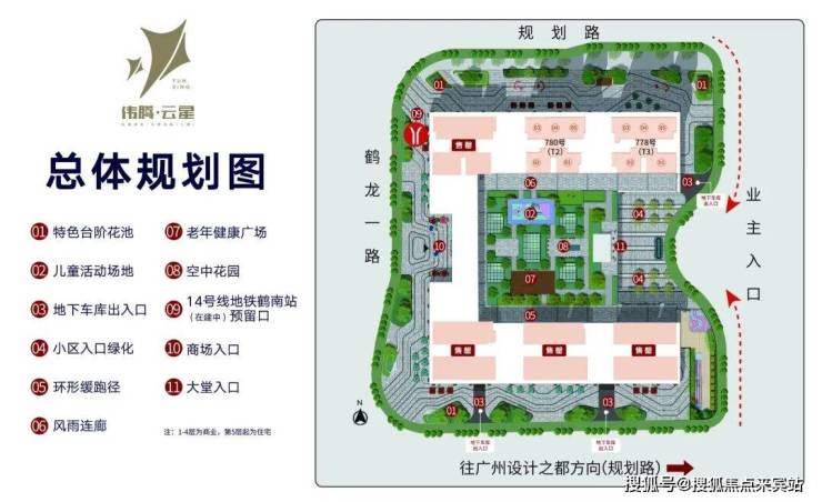 1、交通便利:楼下即是在建的地铁14号线鹤南站,预计通车后可快速直达广州火车站、嘉禾望岗等重要交通枢纽,换乘便捷,全城通勤自由。