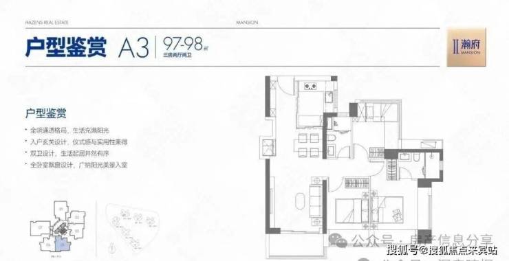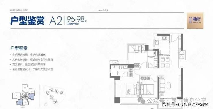 96-98㎡ 3 房 2 厅 2 卫|A2 户型(2 栋 2 单元 03/06)