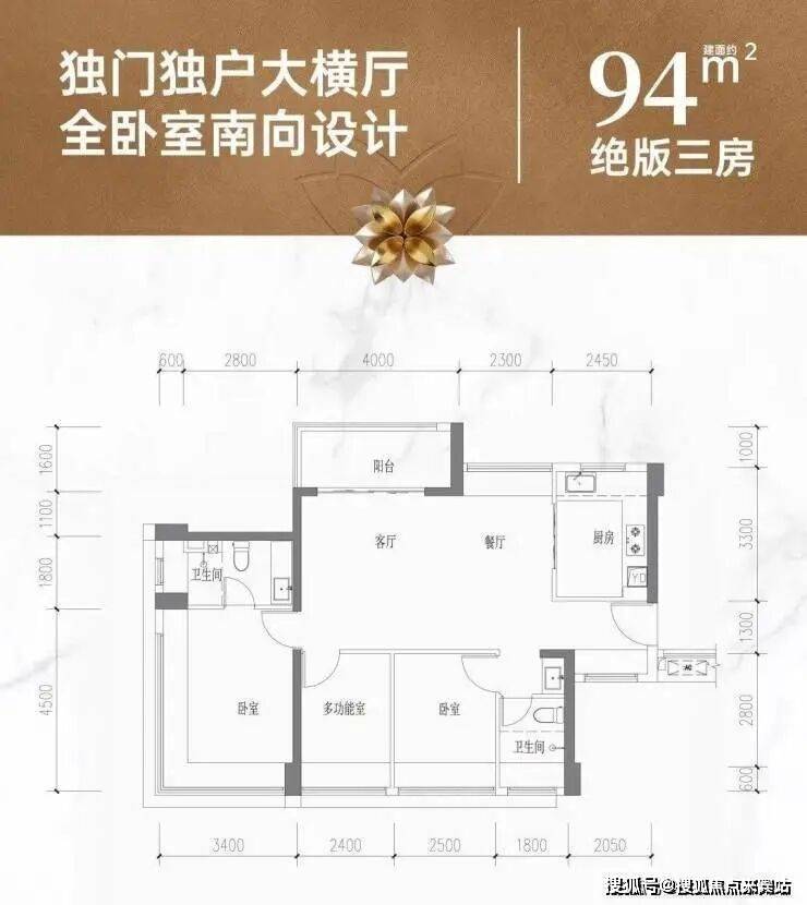 约94㎡三房两卫 | 奢阔横厅范本,独门独户,方正横厅,南北通透,对望泳池;空间感远超新规,绝版!