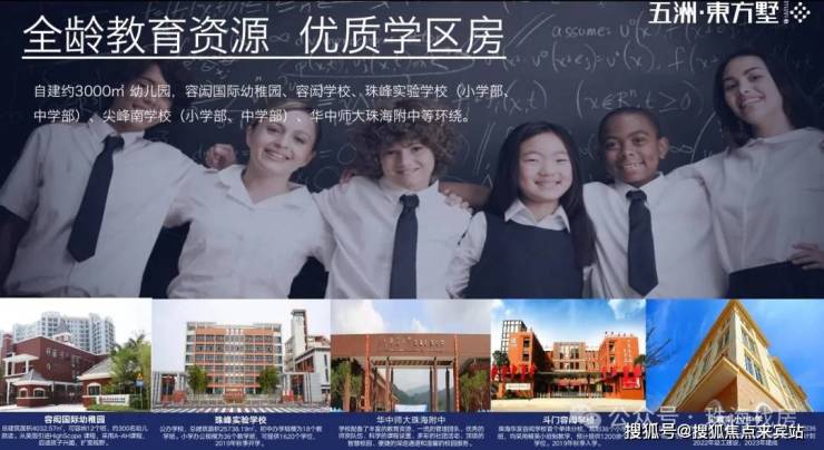 自建幼儿园、苹果树幼儿园、容闳幼稚园、珠峰实验学校小学部及中学部、斗门第二实验小学、尖峰南小/中学(预计2024年投入使用)。