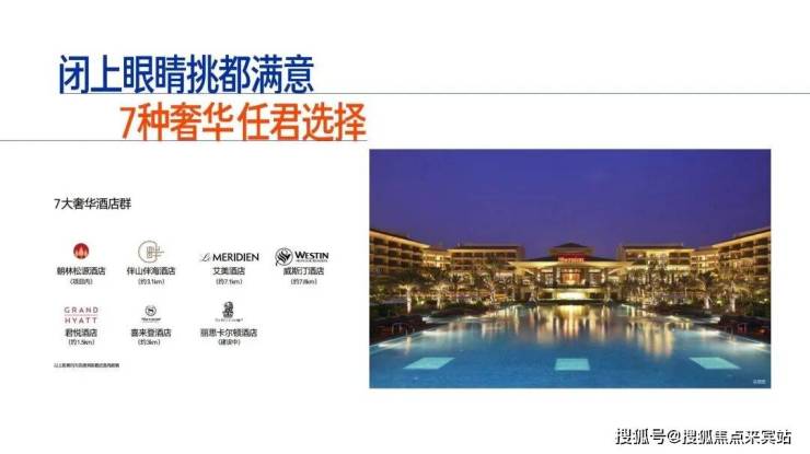 7座奢华酒店 — 朝林松源、君悦、伴山伴海、喜来登、艾美、威斯汀、丽思卡尔顿(建设中)