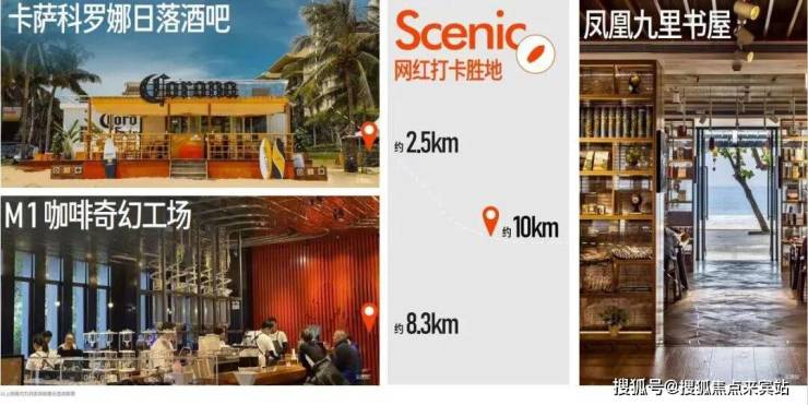 N多网红打卡点 —卡萨科罗娜日落酒吧(约2.5km)、M1咖啡奇幻工场(约8.3km)、冲浪俱乐部、书屋等网红娱乐丰盈海上趣味生活。