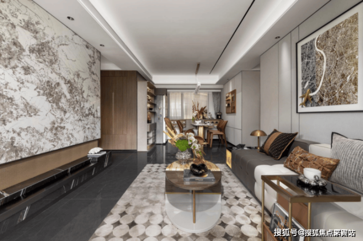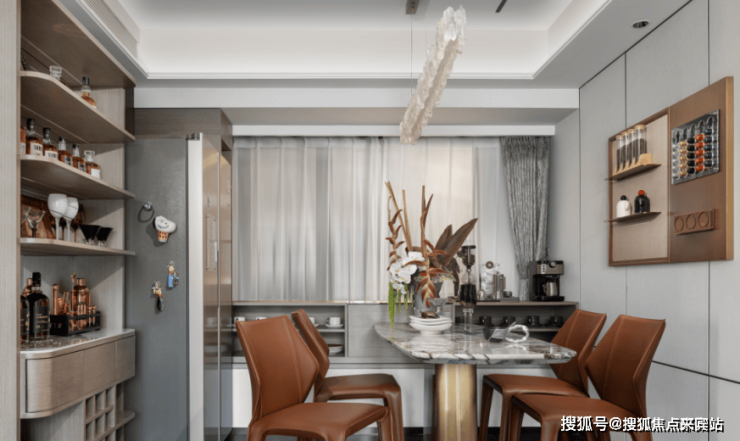 客餐厨一体化,外连大尺度的景观阳台,灵动、阔绰,充分盛载全家人的娱乐休闲。