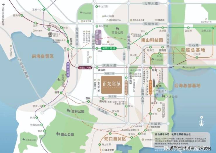 南山区作为深圳科创中心及大湾区发展核心引擎,2021年全区GDP稳居全市榜首,唯一聚集前海、深圳湾、科技园以及蛇口四大核心经济发展极核中心,坐享城市高度发展红利。