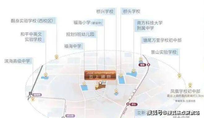 教育资源方面,云上润府周边配备了完善的教育配套,项目自带有1所9班制幼儿园,项目周边2公里范围内还分布有10余所学校,包括九年一贯制桥头学校、福海小学、福海中学、南方科技大学附属中学等。根据宝安区教育局2024年的最新学区划分,小学学区划分在桥头学校小学部、塘尾万里学校小学部、滨海小学(集团)福桥小学、立新湖学校小学部;初中学区划分在桥头学校初中部、塘尾万里学校初中部、立新湖学校初中部。项目内含多所知名幼儿园、小学、中学及高等教育机构,为居民子女提供了全阶段优质教育资源,满足了不同年龄段孩子的教育需求。