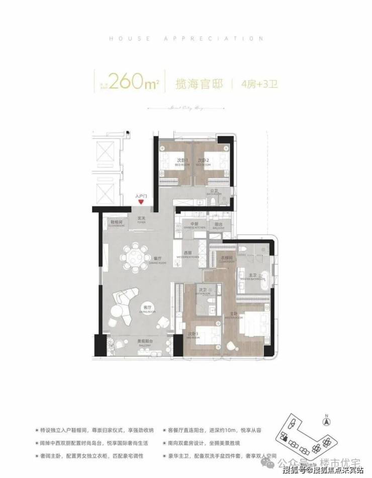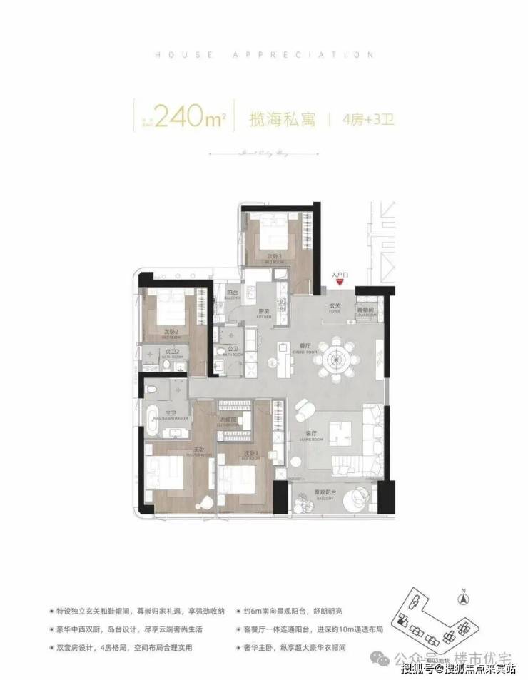 主力户型:建面约165-290㎡3-4房揽海公寓