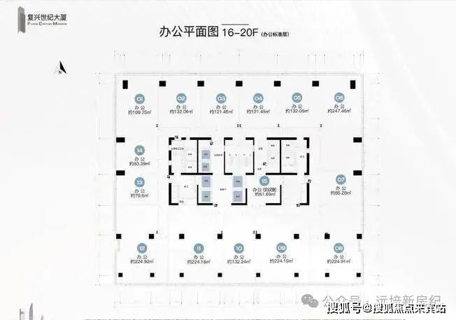 办公产品:建面61㎡-2300㎡,可自由组合,楼层15-20层,层高4米,办公环境宽敞明亮,6梯15户,高效便捷