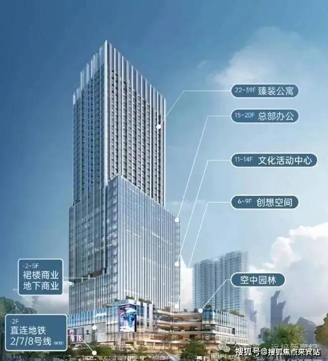 约146m华强北门户坐标,云端臻装公寓、总部办公、可变创想空间,三大产品优势互补。电梯分区,出行高效便捷。涵盖集群商业、空中园林、文化活动中心等多元功能。