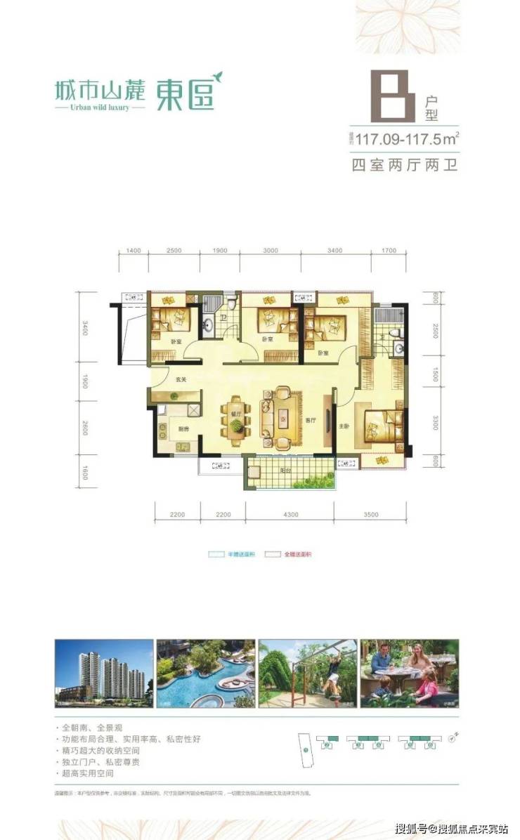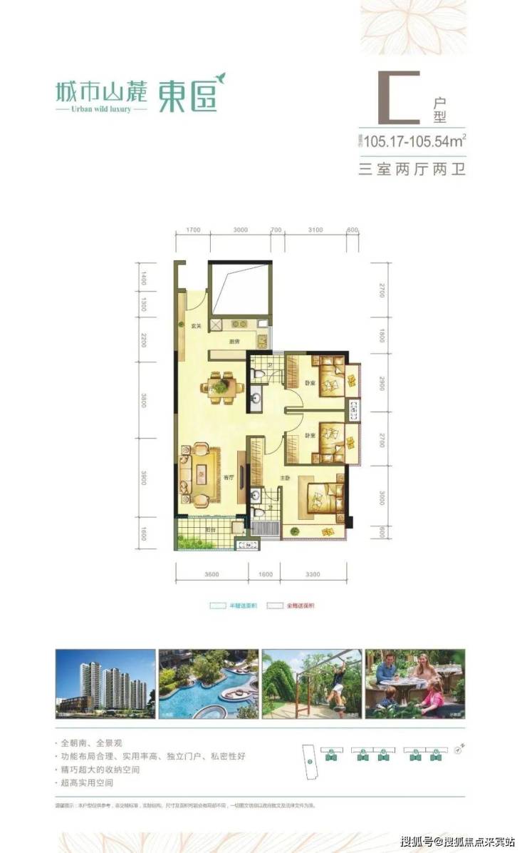105㎡ 三室两厅两卫全朝南,全景观充分利用空间布局,动静分离经济性佳,实用首选
