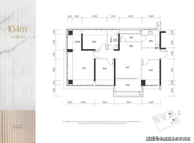 104㎡的4房2厅2卫,3/4栋01户型,设计的是竖厅南北通透格局,进门入户玄关,客厅3.8米开间,LDKB一体化设计,四开间朝南,4个卧室分别做到了主卧19.09㎡/次卧9.57㎡/次卧9.46㎡/次卧8.48㎡(包实测面积,去掉墙体),U型厨房,卫生间干湿分离,得房率约103.9%(包含赠送),阳台主朝西南向。