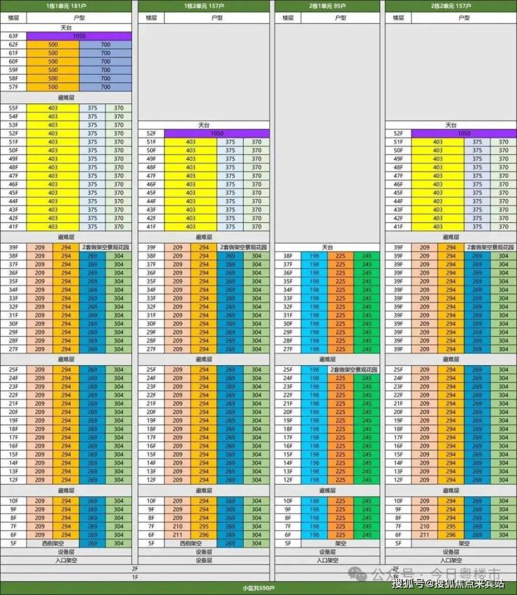超高区58F起(200米以上)是约500-700㎡顶级大平层;