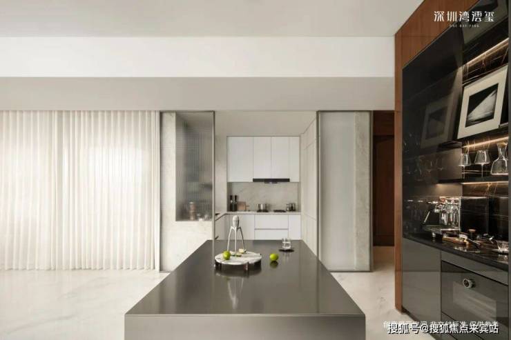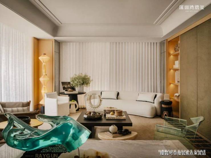 296㎡样板间(CCD设计),现代极简奢雅,以浅色调为基底,搭配天然石材、哑光金属与温润木饰面,践行“少即是多”的设计理念。无主灯的间接照明设计,弱化了空间的厚重感,营造出宁静而高级的氛围,而大面积落地窗与玻璃幕墙,将窗外的深圳湾海景引入室内,让海景成为空间的“流动背景墙”,简约却不简单。