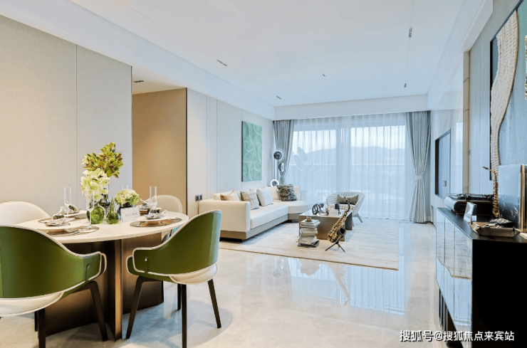 LDK一体化的设计,将餐厅的美味、客厅的美食和观景阳台的美景串联在一起