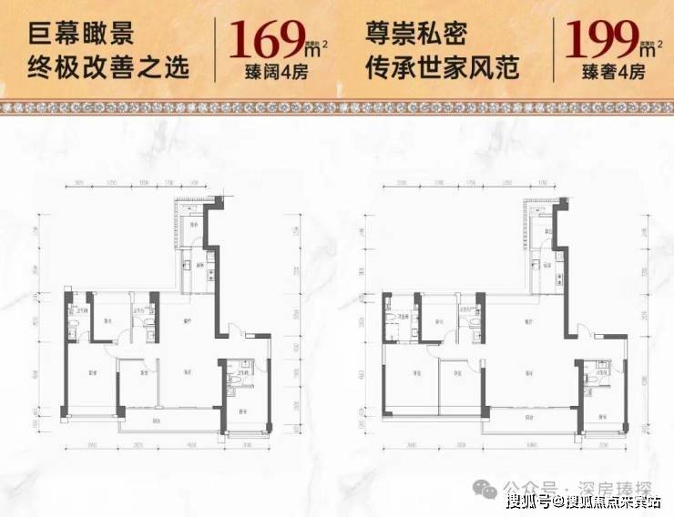 169㎡的4房2厅3卫,设计的是竖厅格局,2梯2户,专梯入户,独立入户玄关,客厅4.65米开间,LDKB一体化设计,四开间朝南,双主卧套间,分别做到了主卧18.98㎡/套间12㎡/次卧9.35㎡/次卧9.04㎡(包含墙体飘窗),客厅连接次卧出7.47米长的大阳台,看花园全貌景观,二字型厨房带1个生活阳台,公卫三段式分离,得房率68.58%(不含赠送),正南朝向。
