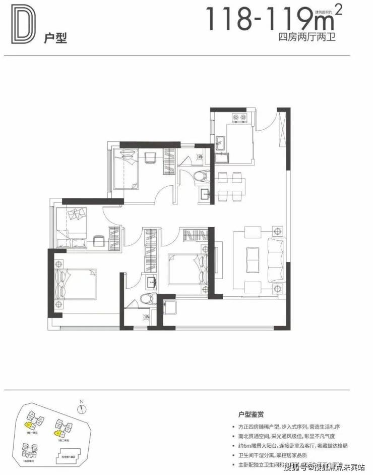 119㎡4房2卫:411-412万