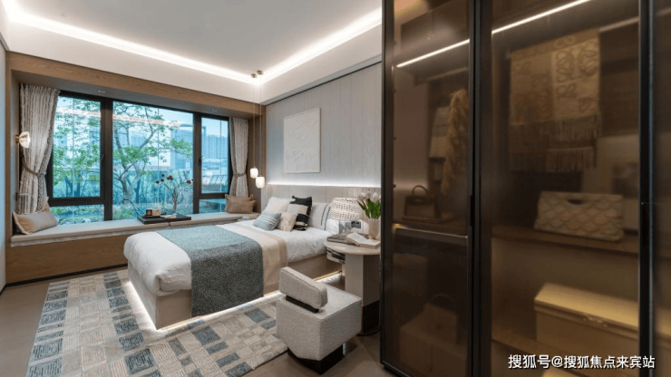 2栋能被称为“楼王”,就正因其正对着滨水景观,直观上涌果树公园,IMAX巨幕视野,直接将大片的绿意揽入室内。