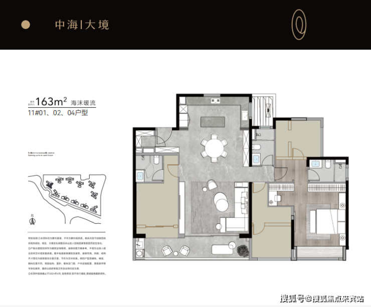 11栋04约163㎡户型,是社区内唯一东南看花园产品,约260米视觉通廊,2万㎡花园尽收眼底。