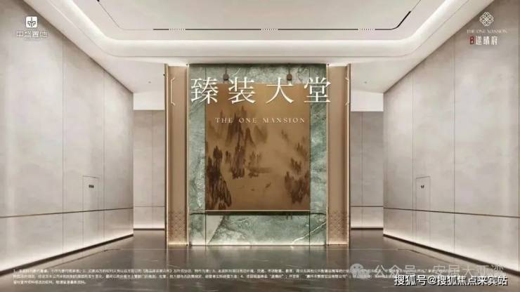 再看首层入户大堂,奢阔挑高,入目是普拉达绿奢石与诗意山水墨画的视觉碰撞。