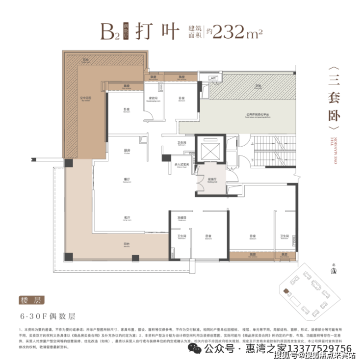 建面约 232㎡户型:得房率超 125%,实际使用面积堪比传统 340㎡住宅,空间性价比远超常规项目。采用 L 型设计,大概有 70㎡空中露台,拥有 270° 环幕视野,采光与视野双重升级。折算单价约 2.16 - 2.63 万元 /㎡,总价在 498 - 608 万之间。