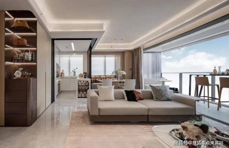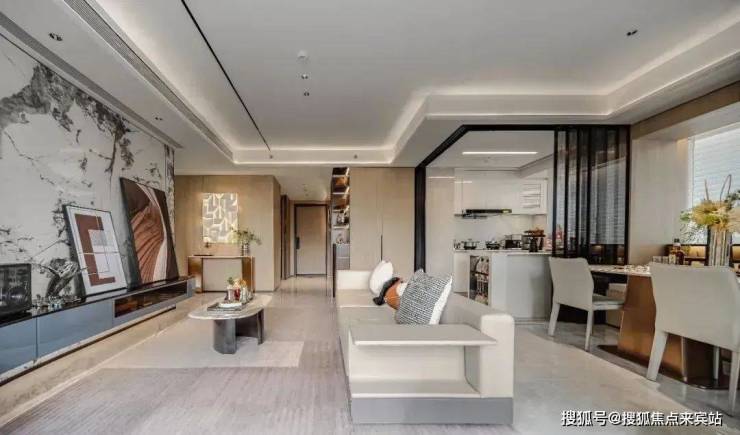 LDKB边厅一体化豪宅设计,约7.3米大开间,视野开阔,270°观景。一体化的设计构成了无界融合的家庭中央活动休闲区,面积约50㎡,无论是雨打芭蕉、月下独酌、还是家族欢聚,无数美好的场景,都得以从想象走进生活。