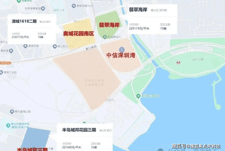 从价格来看,距离中信深圳湾目最近的小区:翡翠海岸、半岛城邦花园三期、奥城花园南区等二手房挂牌价均在22万/㎡左右(来源于贝壳),甚至巅峰期价格一度到达30万+/㎡。