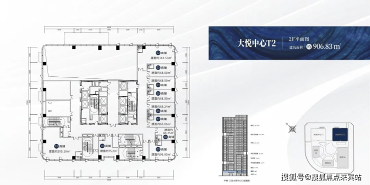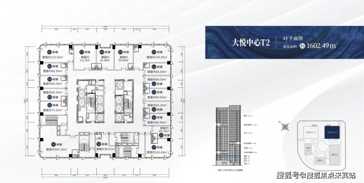 大悦中心T2,创梦之翼,高度100米,共23层,总建筑面积约3.5万㎡,其中2-4F为商业写字楼。