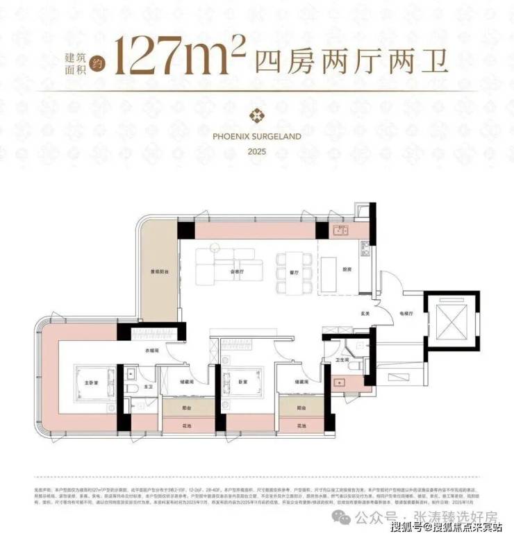 建面约 127-300㎡新规改善大宅,四房户型占比超 87%。主力户型专梯独户设计,为高净值人群划定纯粹居住圈层,进阶品质生活。