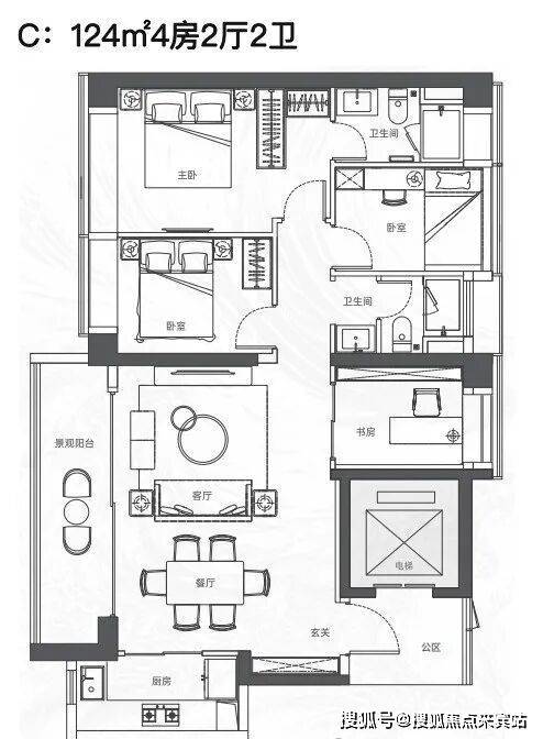 1.每户配备私家电梯厅,提供一梯一户的尊贵体验;