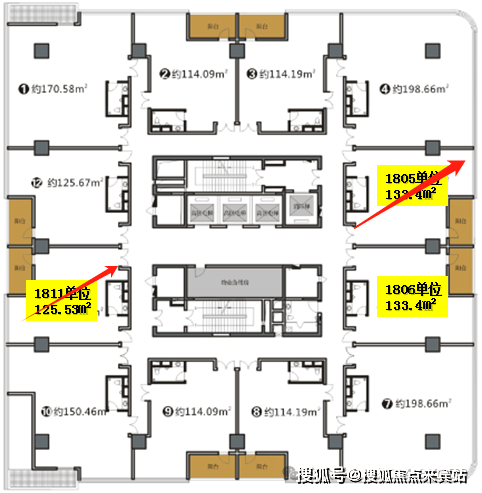 参考单位,面积266.8㎡ ,东面电梯口,城市景观 ↓