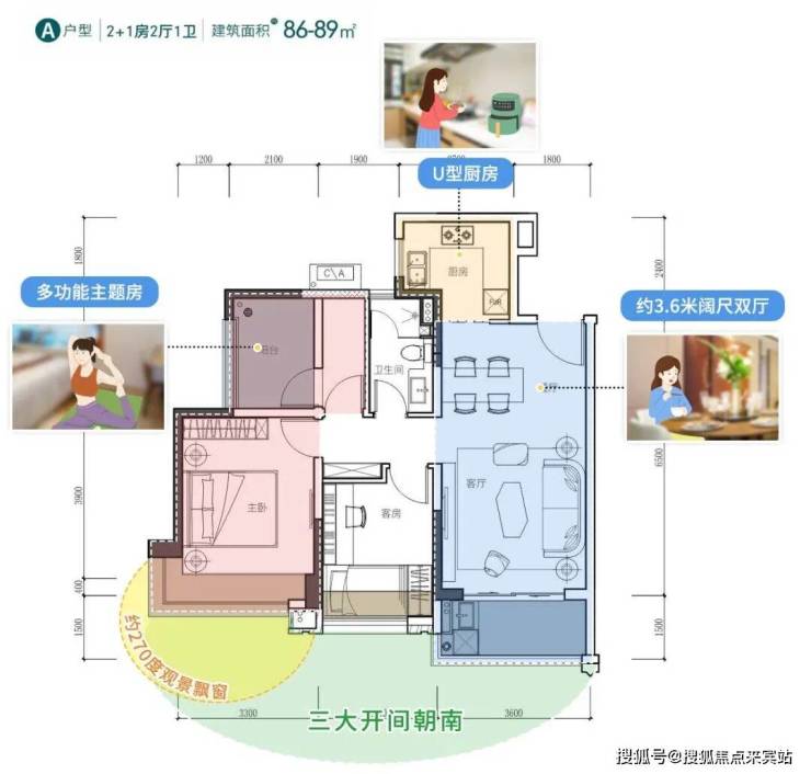 建面约86-89㎡户型;更绝妙的是,主卧的起居空间奢阔,更带超3米的飘窗,直接将阳光面拉到最大,更能以270度超广角视野观景。