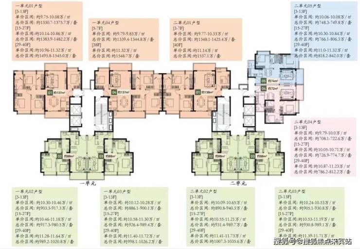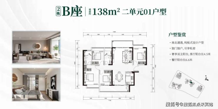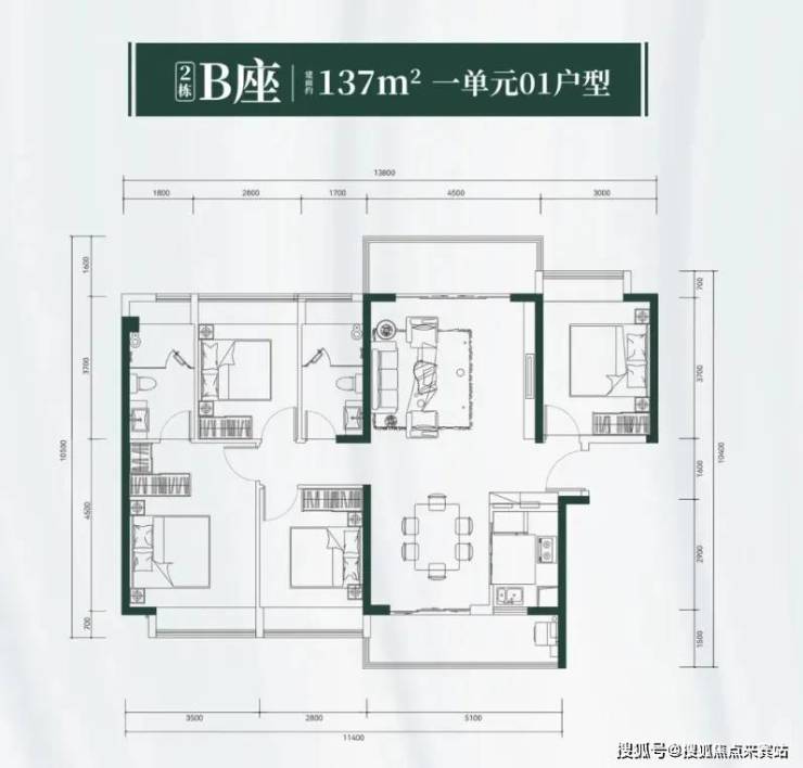 2栋B座一单元01、04户型、2栋B座二单元01户型:面积约为137-138㎡的4房2厅2卫;
