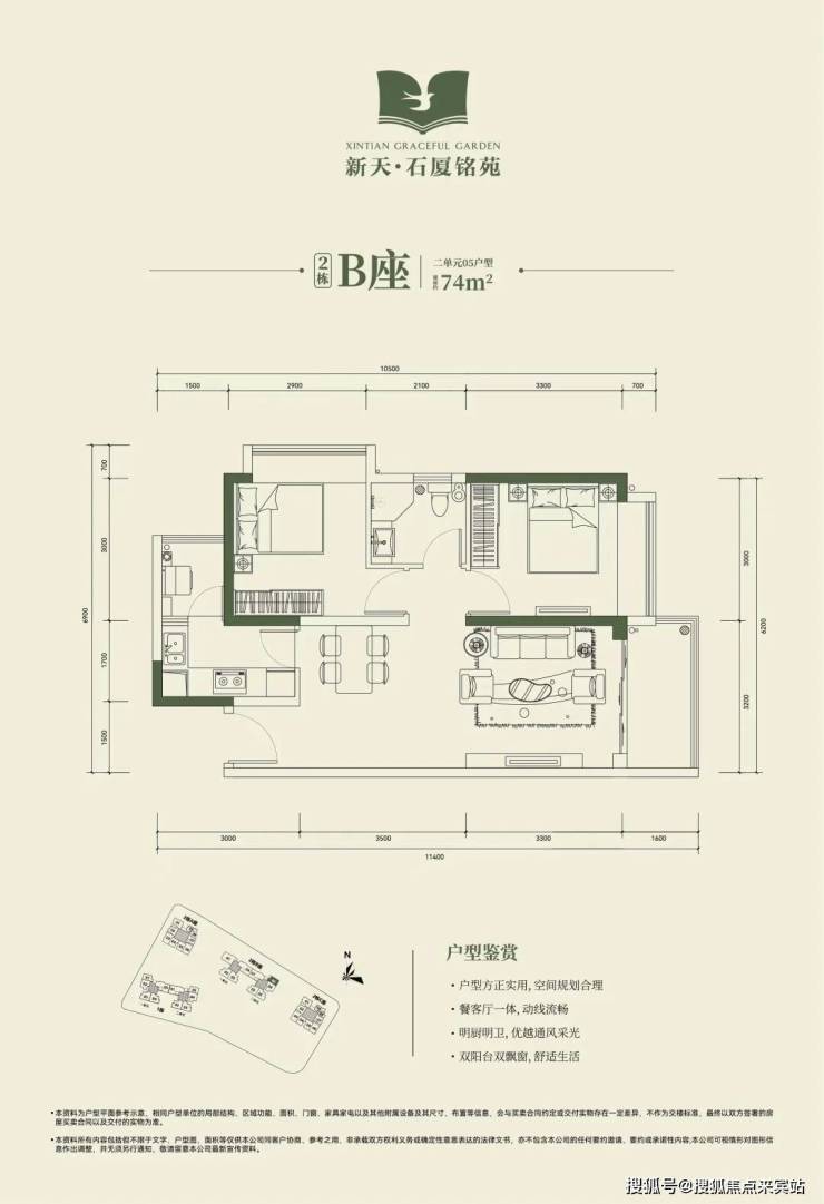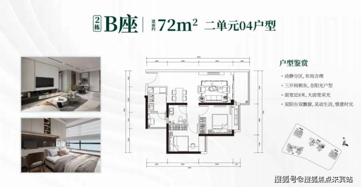 2栋B座二单元04、05户型:面积约为72-74㎡的2房2厅1卫。