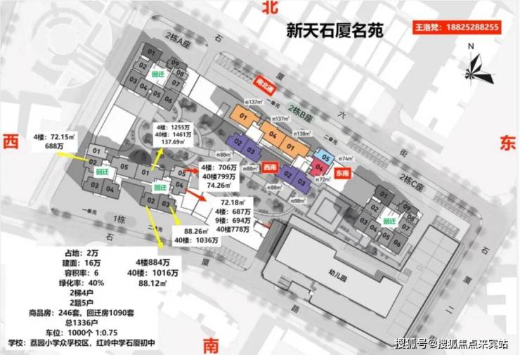 项目位于福田石厦片区,为石厦村旧改二期。有5栋,共有房源1336套,可售商品住宅246套,1090套房源为回迁房住宅;该5栋建筑主体组成,分为1/2/3栋,其中1栋分为1单元和2单元,2栋分为ABC座,2栋B座由1/2单元组成,3栋为幼儿园;可售的只有2B栋的两个单元个。