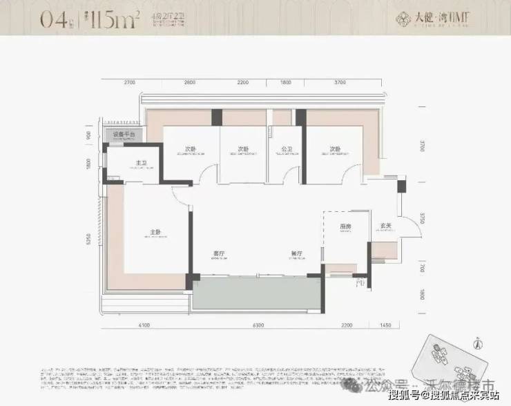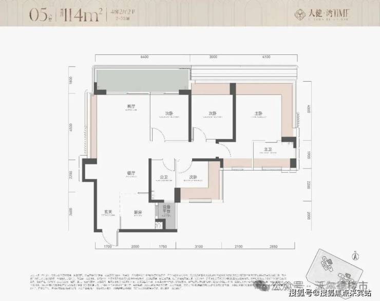 建面约114㎡四房户型是113㎡户型的镜像版,格局一模一样。