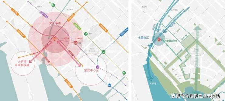 项目位于宝安中心区核心地段,坐拥主次干道交汇处,串联中心区与大铲湾未来科技城。南倚别墅绿植景观,北临公共水体与远海视野,形成南北景观通廊,兼具公共水景与私密绿化的过渡优势,区位价值显著。