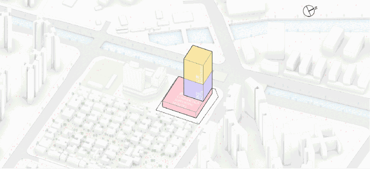 这个项目从一开始就充满了挑战。城市酒店讲究品质与效率并存,公寓追寻视野与私密,而商业则需要最大程度上面向城市展开。如何在高容积率、小地块中让三者和谐共处甚至是互相促进是设计的初衷。 “IN BETWEEN”---“之间”这个词是设计开始的第一天便出现在脑海里并最终贯彻、落地的。 “之间”联系着综合体开发的内核:功能之间的共荣内核; 同时也存在于不同设计师界面“之间”的融合。建筑师往往在一个项目中最早介入、最晚退场。如何集成一体化的处理好“界面之间”,充分提前布局、充分设计留白也就成了设计工作的重中之重。