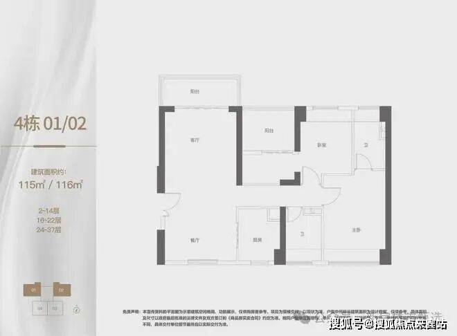 建面约115/116㎡3房