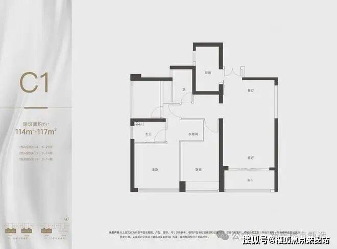 建面约 114-117m²,3 房