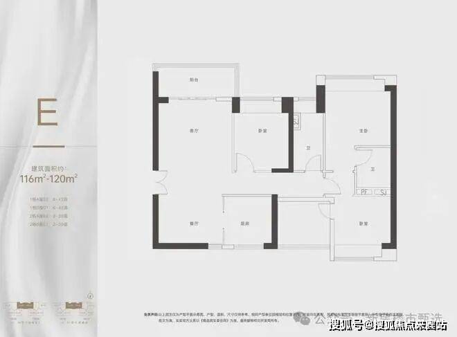 建面约 116-120m²,3 房