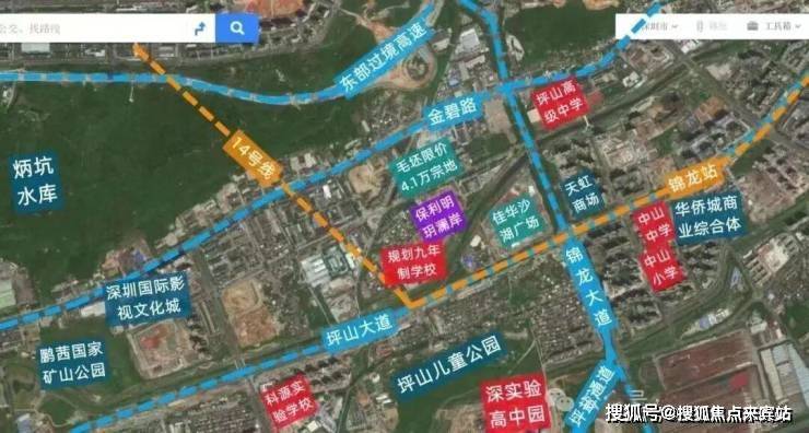 另外项目北侧约1.3公里处规划在建有东部过境高速出入口,全线长31.68公里,设计时速80公里,从坪山金钱坳立交出发,终至罗湖莲塘口岸。