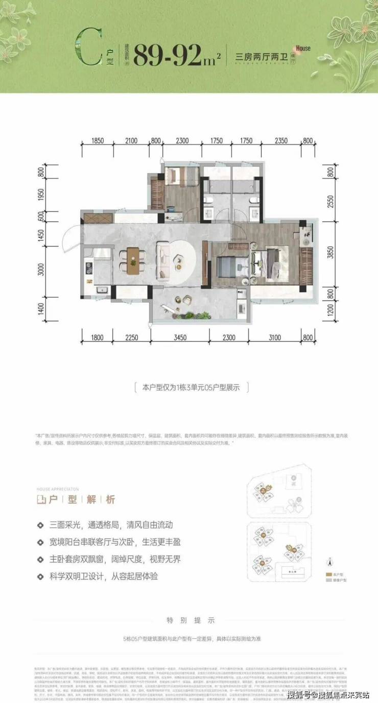 首次推首北地块1栋3单元,约80-92㎡ 3房,共195套,新规使用率高达96%-105%!
