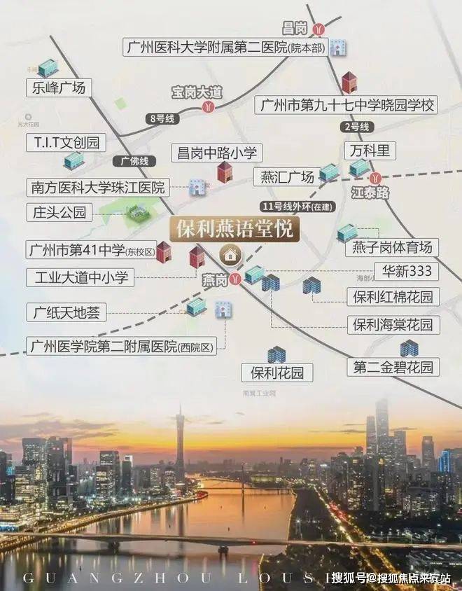周边名校环伺,包含广州市五中附属初级中学(省级)、广州市第41中学(省级)、宝玉直实验小学(光大校区)、江南外国语学校、工业大道中小学、红棉小学、海富小学、南燕小学、培红小学等9所学校环伺,完善区域教育体系。